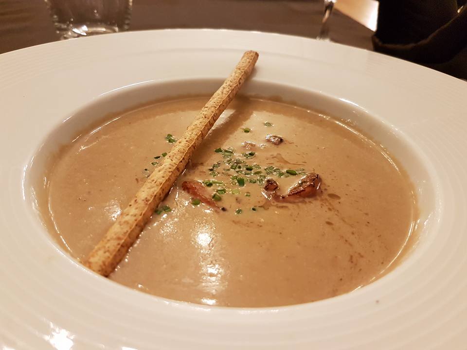 Velouté en amuse-bouche. Au goût des papilles, j’y ai pris mes repas de week-end, excellents de qualité et la prise en charge des touristes par cet hôtel-restaurant y est extra. Le couvert réservé sur mes trois repas, me permit des allers-retours confortables entre la basilique et l’établissement .