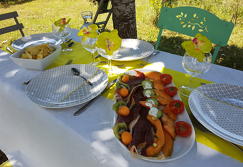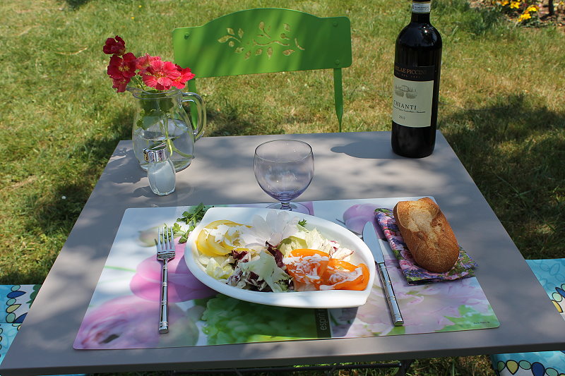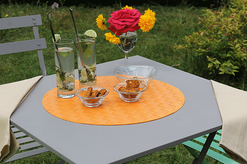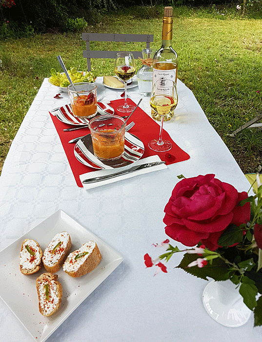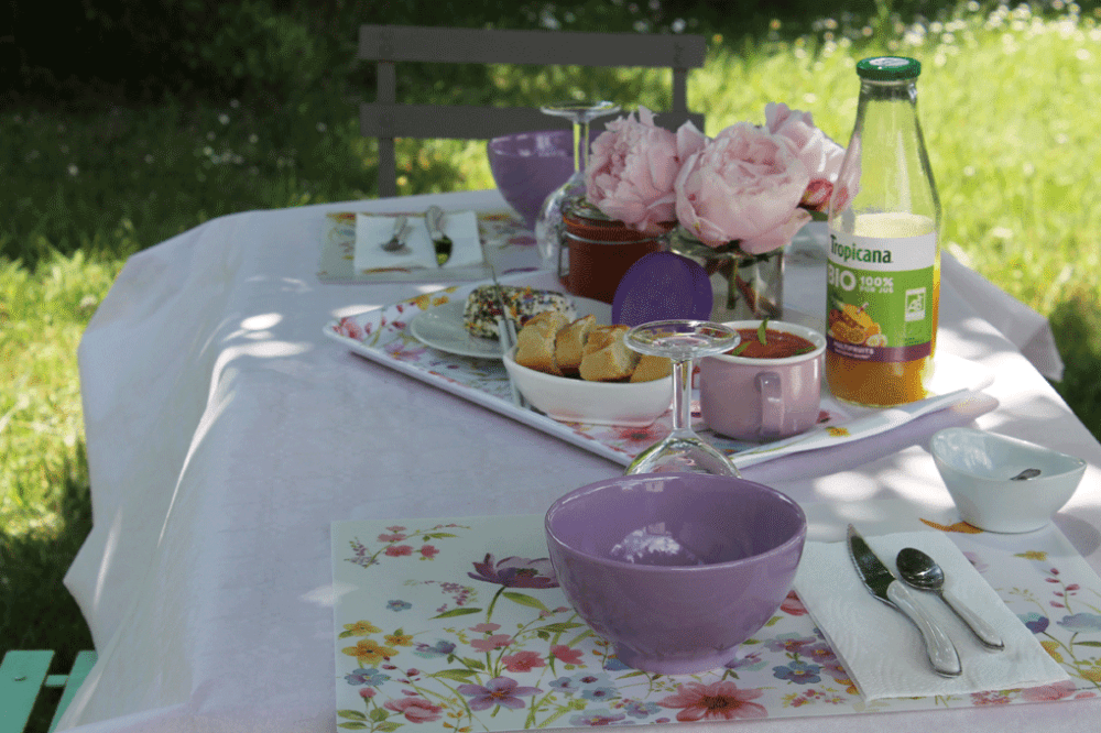 C’est le top chez vous! d’habitude, le déjeuner au jardin chez nous, ce sont des assiettes en plastique, j’aime pas trop la vaisselle après. Chez vous, ce sont de très jolies couverts. Ça donne trop la dalle quand je regarde ce que vous faites Muriel ;)