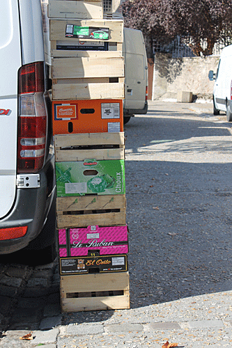 Notamment une marchande d’œufs qui installe, en parallèle, des petites boîtes artisanales, assez jolies d’ailleurs. Probablement un assortiment pour y mettre les œufs Bio qu’elle propose.