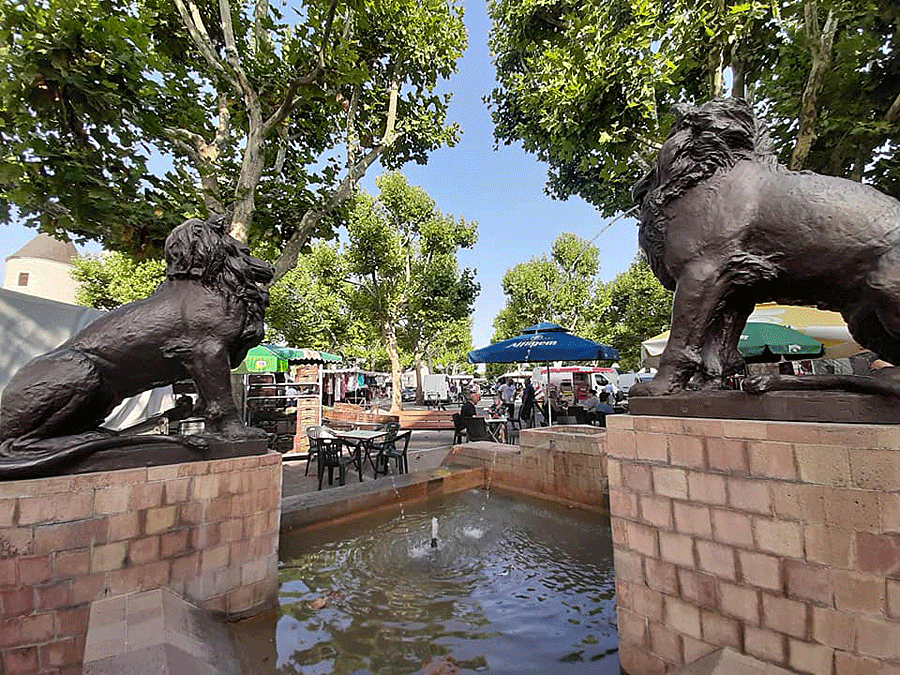 Ils sont ici depuis les Lunes, voient tout, entendent tout. Ils philosophent, ancrés à la très jolie fontaine du centre-ville. Fontaine qui renvoie au visuel de l’un de nos plus vivants et jolis marchés du Berry. J’aime !