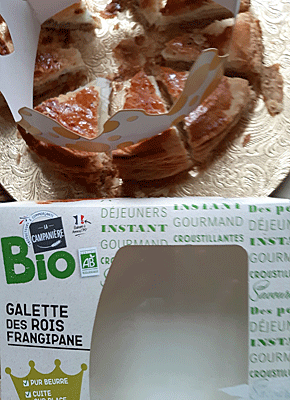 Côté « Jour des Rois » et de la galette, je me suis trouvée tout à fait par hasard, nez à nez avec la galette bio. Sont des hasards autrement plus heureux, un peu restée sur ma faim quant à celle-ci.
