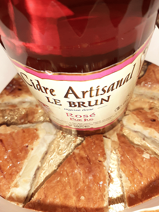 Puis je me dirige vers le rayon « cidres » ; pour cette année, un cidre rosé délicieux ! Mais elle se mange bien. Devais-je m’attendre à autre chose, qu’une galette ramenée du supermarché ? Qui plus est, très friable au sortir de son emballage cartonné (même avec précaution).