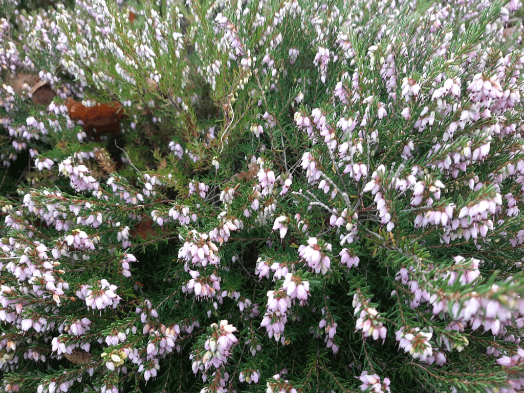 Je profite de sa très généreuse floraison cachant quelques pierres d’une rocaille récemment installée au jardin, pour vous accueillir. Cette bruyère hivernale plantée depuis trois semaines seulement, a profitée d’au moins 10 cm de circonférence. L’avantage étant qu’on en fait un peu ce que l’on veut, qu’elle se taille très facilement et au contraire, ne pas craindre car cela permet de lui conserver son cœur bien touffu et tailler autour de celui-ci. La couleur est parme… Vous savez, ce rose violine et plein de tendresse. Cette couleur revient souvent à la maison, tant à l’intérieur qu’aux extérieurs comme ci-dessus.