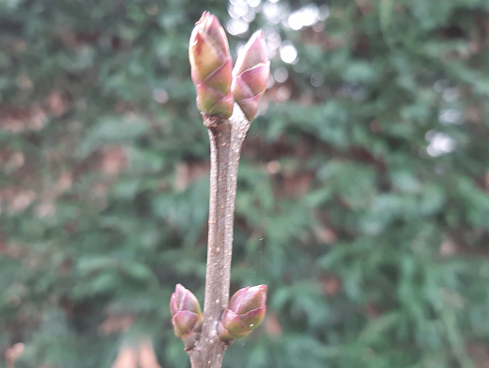 Lilas bourgeonnant devant la haie : 09/02/2020