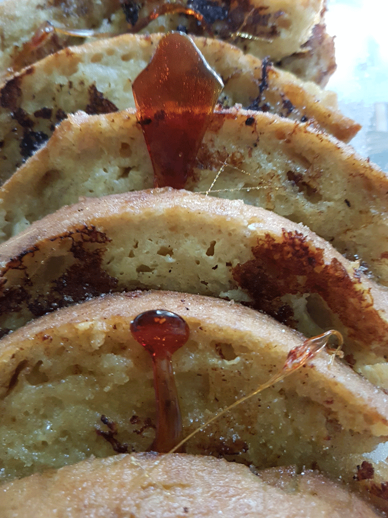 Pain perdu traditionnel auquel j’ajoutais ici un peu de caramel (sans eau – juste le sucre fondu doucement dans un fond de casserole).