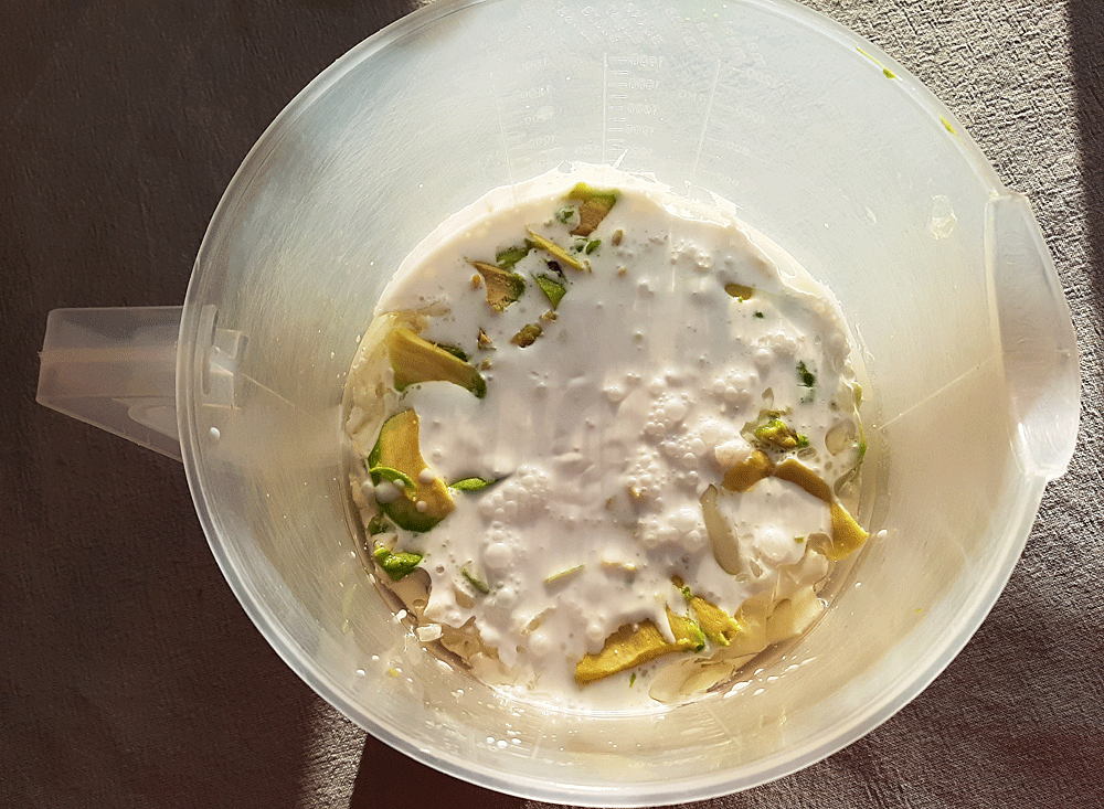 J’ai préparée ce velouté d’avocat au lait de coco. C’est un délicieux moment à se faire plaisir au cœur de l’hiver, d’une douceur exquise, avec un petit air exotique.