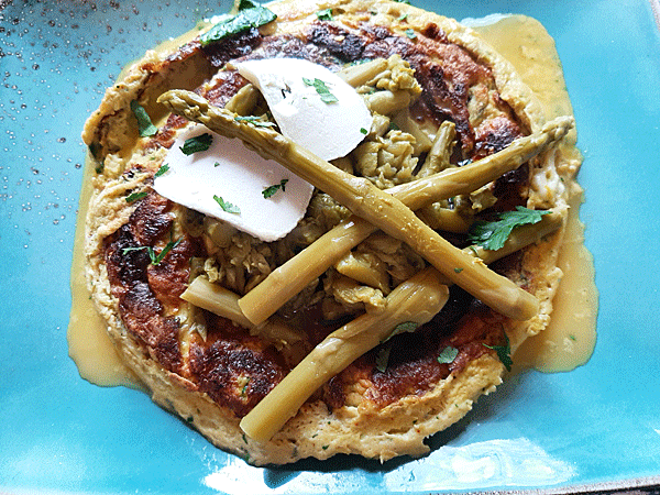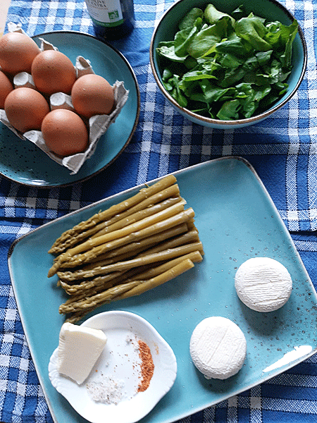 Omelette d’asperges vertes, et crottin de Chavignol