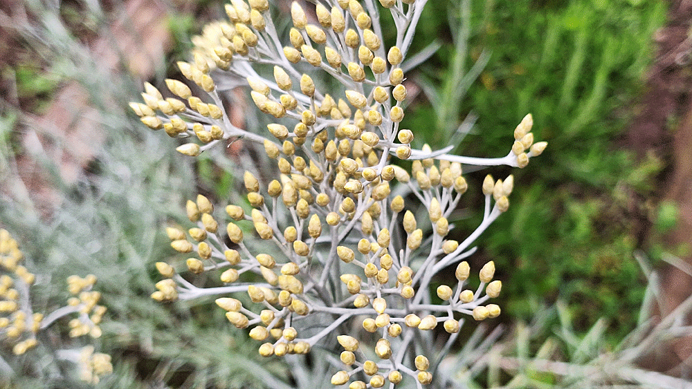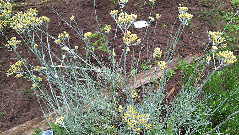 Ma plante est assez jeune, avec une année supplémentaire, j’espère contemple ce petit buissonnant qui lui va si bien ! C’est vrai qu’on dirait le Sud ! Nommée ‘Immortelle d’Italie« .