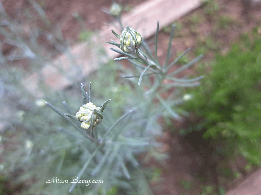 Cependant je ne l’ai pas cuisinée l’an dernier, pour privilégier sa reprise. Elle a un joli feuillage gris argenté et des fleurs jaunes, lumineuses, sur lesquelles je zoomais.