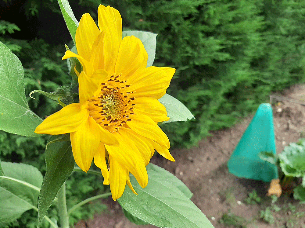 Et si je me mettais à peindre, ne serait-ce un seul Soleil, je laisserais alors volontiers ses rayons remplacer mes pinceaux. Dans la première heure des semis, je fis pour 6 tournesols. Je l’explique dans un autre article faisant foi, j’ai perdu trois de ceux-ci par grignotages, probablement d’escargots. Quoi qu’il en soit, je suis tout de même heureuse de pouvoir les admirer depuis le potager. J’ai gardé un bon nombre de graines bio du sachet acheté, je saurais pour l’année suivante et j’en ferais d’ailleurs davantage. Je suis sûre que parmi mes lecteurs, certains d’entre eux ont cette ravissante fleur chez eux ! Dites-nous dans les commentaires.
