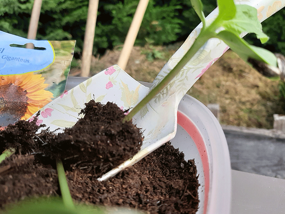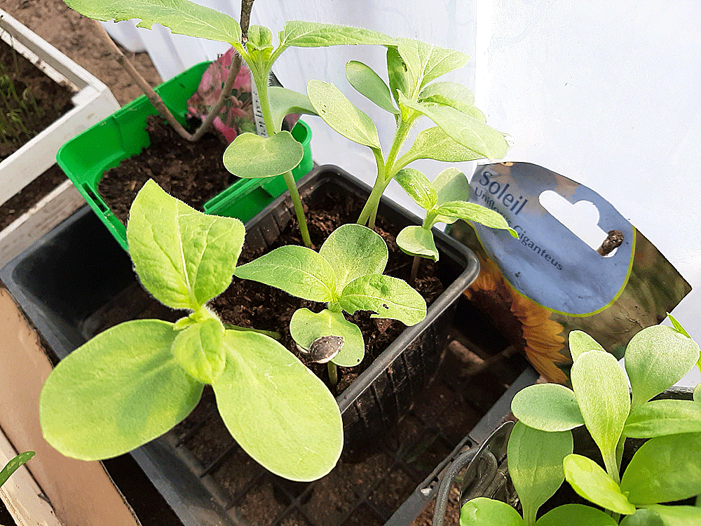 Depuis trois ans, je sème chaque printemps des Tournesols en godets dans un premier temps. Puis je les place en pleine terre, lorsqu’ils sont développés 3/4 belles paires de feuilles. Pour ensoleiller des recoins de jardin, ainsi que d’anticiper la nourriture de nos amis à plumes et leurs mangeoires, du jardin d’hiver.