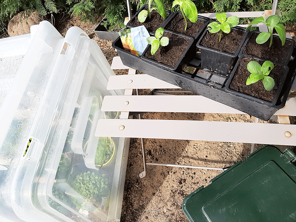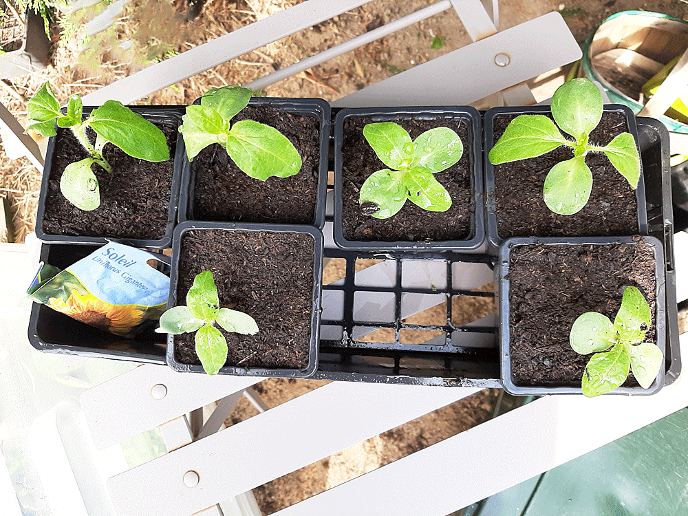 Repiquage de première nécessité ;) : 6 Soleils – Pour masquer un jour à fleurir au fond du potager.