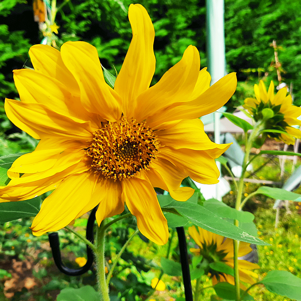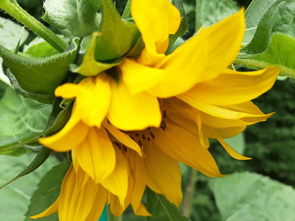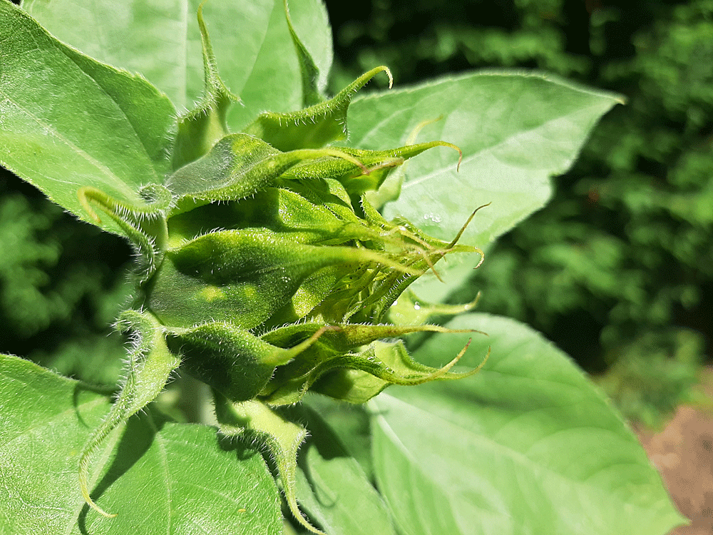 Ils tenèrent leur promesse : de leur phase de développement, jusqu’à leur magnifique port de tête dressé Est-Ouest. Je vous raconte bien volontiers, via les quelques zooms plaisir que je fis depuis le potager, ces morceaux choisis.