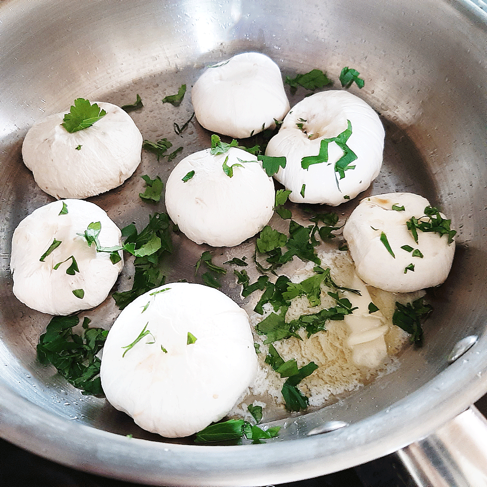 Avant de cuire les champignons servis en garniture, je les trempes dans un de jus de citron, pour éviter qu’ils noircissent. Champignons à poêler avec un peu de persil.