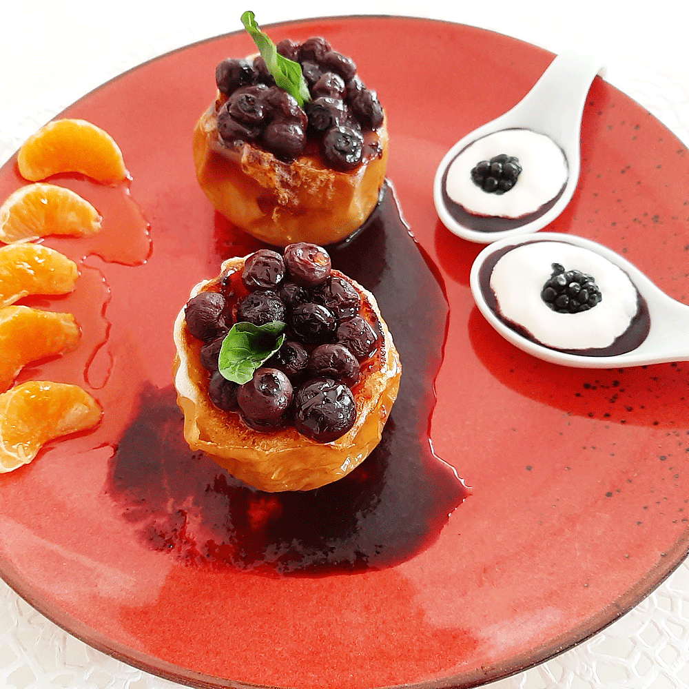 C’est un dessert facile et léger, délicieux en bouche, que j’ai préparé rapidement. Un entremet à base de pommes et myrtilles surgelées (été dernier). Clémentine et mûre fraîche se sont invitées en déco. Régalez-vous ! Pour 2 personnes :Préparation : 20 mnCuisson : 35 mn Ingrédients :* 2 belles pommes* 200 g de myrtilles * … Lire la suite Duo Capucin : Pommes et myrtilles