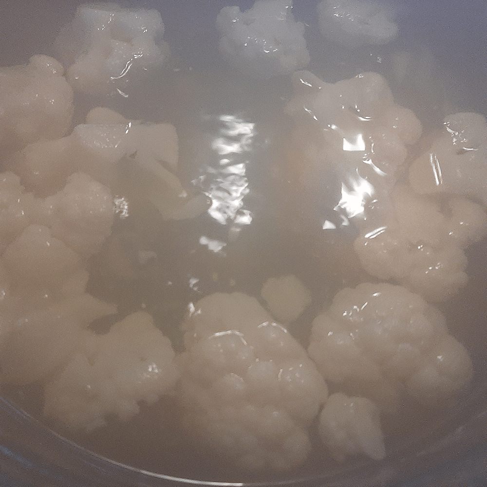 ° Si vous souhaitez accompagner le poisson avec les lentilles corail et le chou-fleur, il vous faut une poignée de lentilles / assiette. Idem pour le chou-fleur. Ces deux accompagnements sont cuits avant le poisson. Les lentilles sont filtrées une fois, puis mixées. Quant au chou-fleur, il est finement écrasé à la fourchette. Deux assiettes à part, comme je le fis, avec une tomate par assiette, coupée par la moitié et cuite à la Provençale. De chaque côté, lentilles et chou-fleur.