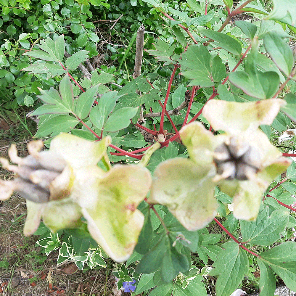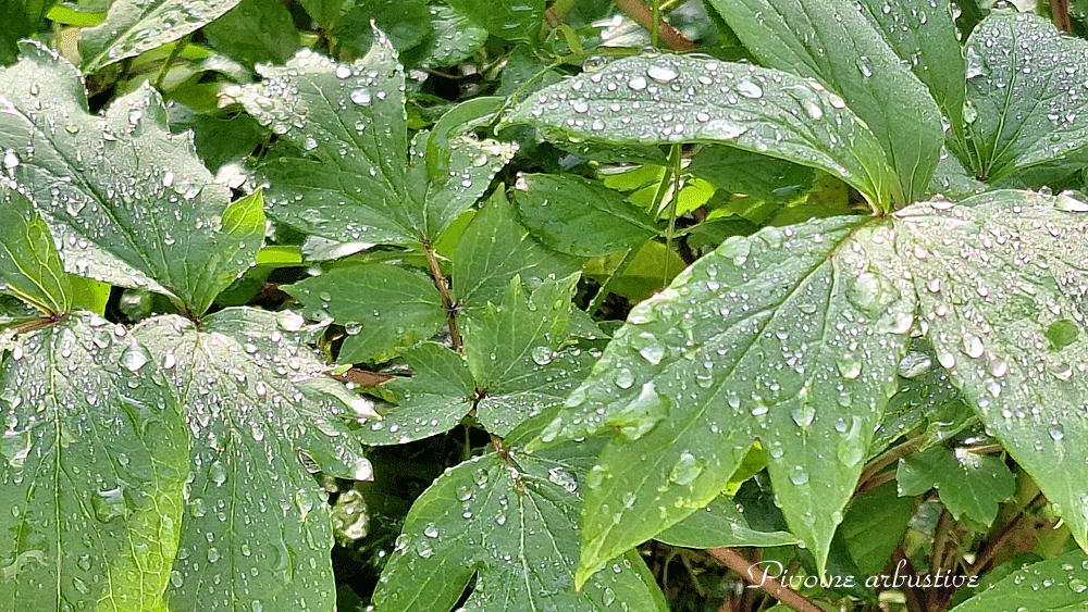 Votre pivoine arbustive est peut-être plus connue de nom d’arbre MOUTAN, elle serait originaire du centre de la Chine, selon wikipedia, cultivée comme plante ornementale depuis 1500 ans en Chine et deux siècles en europe, la vôtre est double n’est-ce pas ?