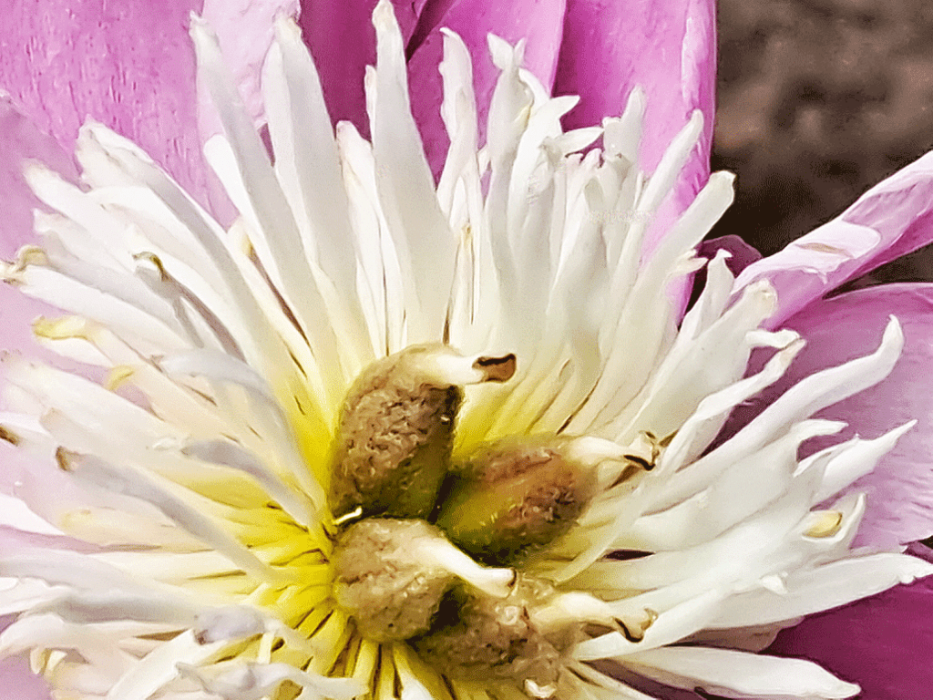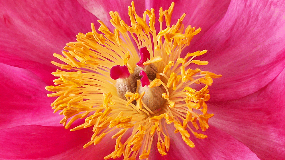 Ci-dessous : phase de défloraison, cette magnifique pivoine sur laquelle j’ai zoomée au maximum.