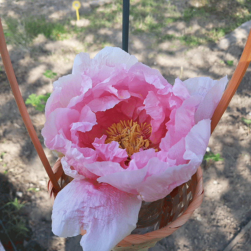 « Suffruticosa Pink » est son nom : à fleurs doubles – Garnies d’étamine jaunes.