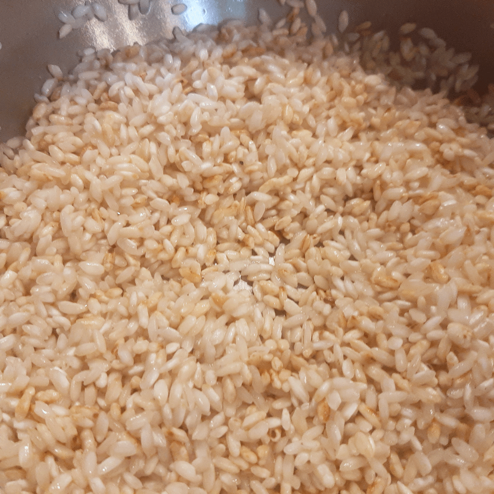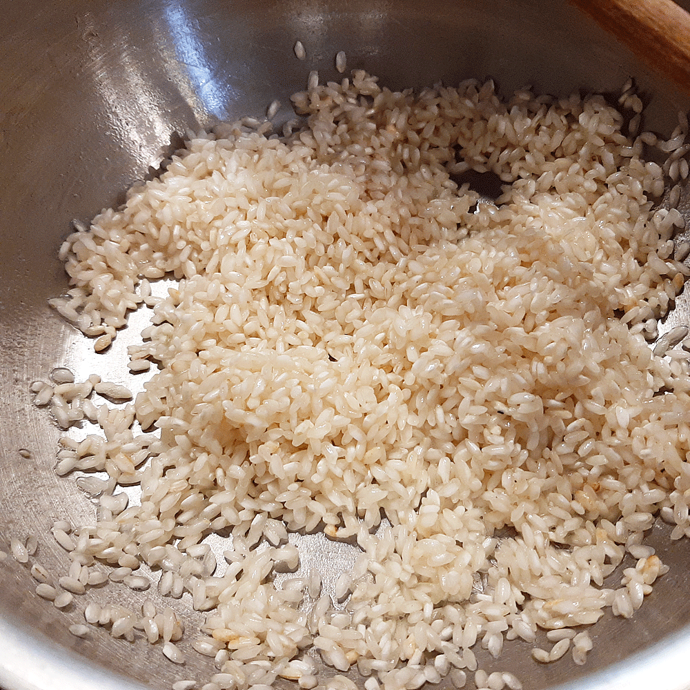 - Faire chauffer le beurre dans une casserole. Versez le riz et remuez 3 mn.