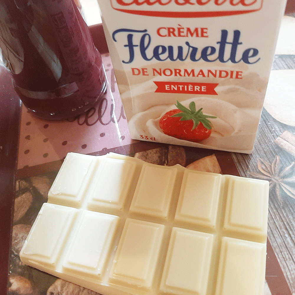 10 cl de frême liquide entière - 45 g de sucre – 2 c. à s. de coulis de framboises