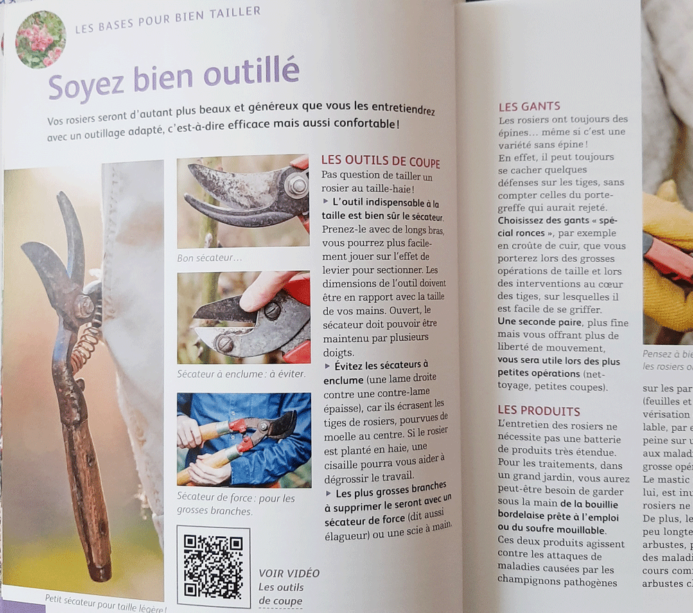 L’ouvrage m’a fait d’autant plus plaisir que je n’avais pas jusqu’ici un tel livre regroupant mille et une subtilités livrées en de judicieux conseils aux amateurs et amoureux des roses. Je crois bien que celui-ci embrasse à lui seul de précieuses démonstrations. Des livres, un beau sécateur au manche façon bois, je vous montre dans le prochaine publications.