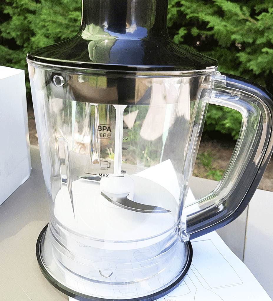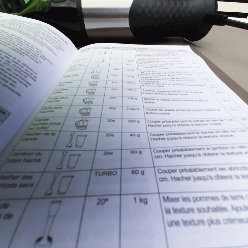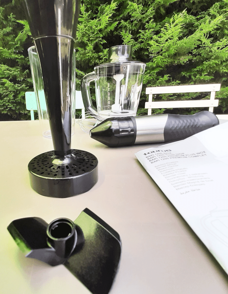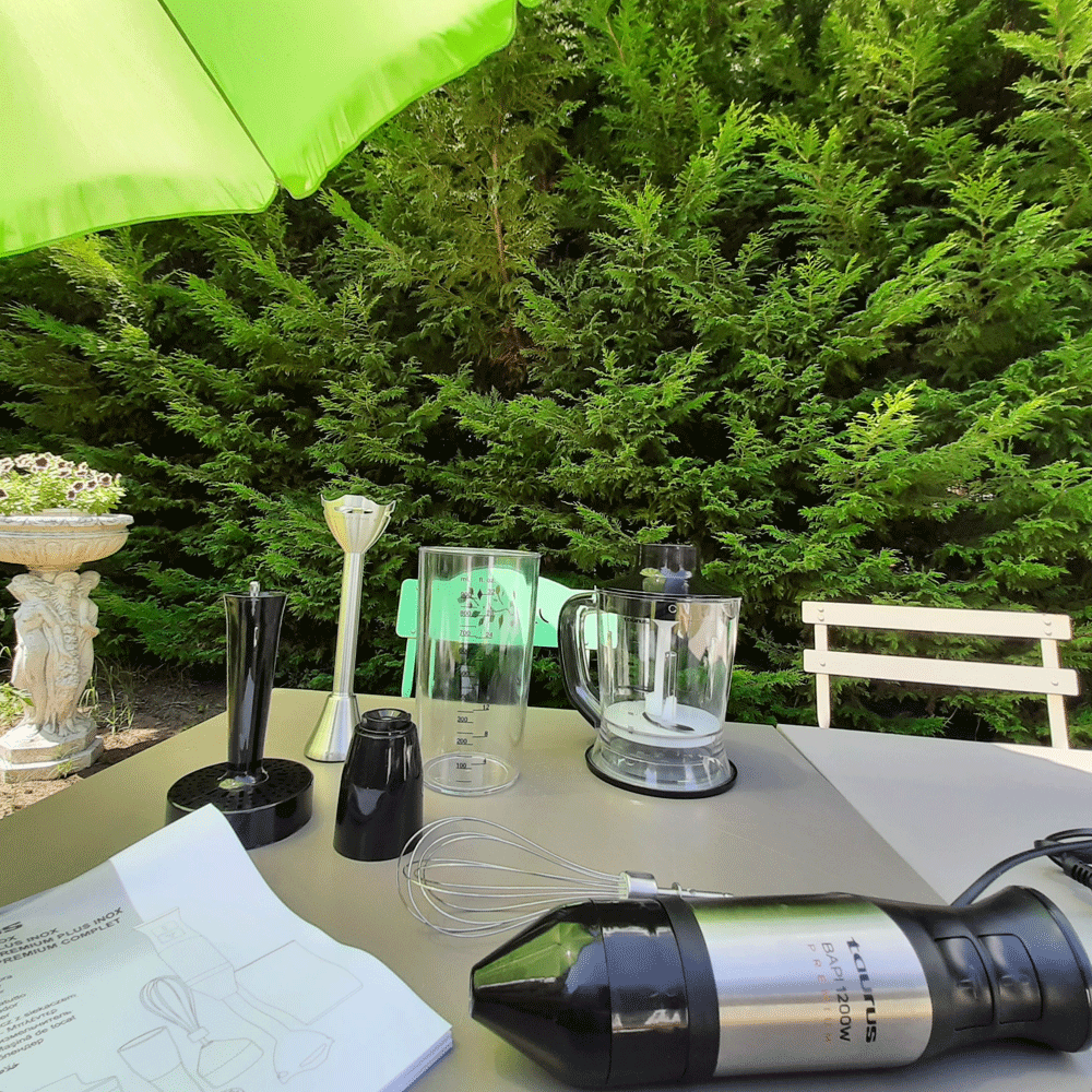 Son nom m’a tout de suite parlé et mon intuition m’a aussitôt soufflée que j’aurais à faire à une force de la nature, du costaud… Bien sûr, le temps me le dira. Mais avec cela, plus rien de comparable ! Tant de l’ergonomie, la puissance, le design et ses ustensiles pratiques. Il faisait si beau cet après-midi, et hâte de voir, que j’ai emmené tout l’emballage au jardin pour le découvrir et consulter la notice. Pas mal, alors que je voulais juste changer de mixeur plongeant.