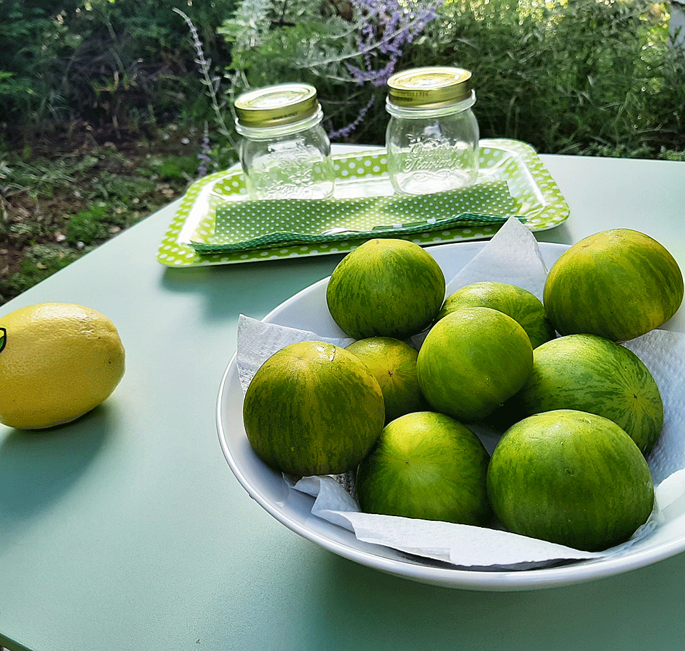 Anticiper une récolte de tomates vertes en attendant qu’elle arrive à mâturité au potager, c’est bien aussi ! Je m’en suis procuré quelques-unes provenant du marché, et prendre un peu d’avance sur un temps déjà compté à l’heure où je publie. La tomate verte « Green Zèbre« , est délicieuse et c’est pourquoi cette année j’ai prévu un peu plus large que les années précédentes, à planter les godets verts au sortir des Saints de Glace.