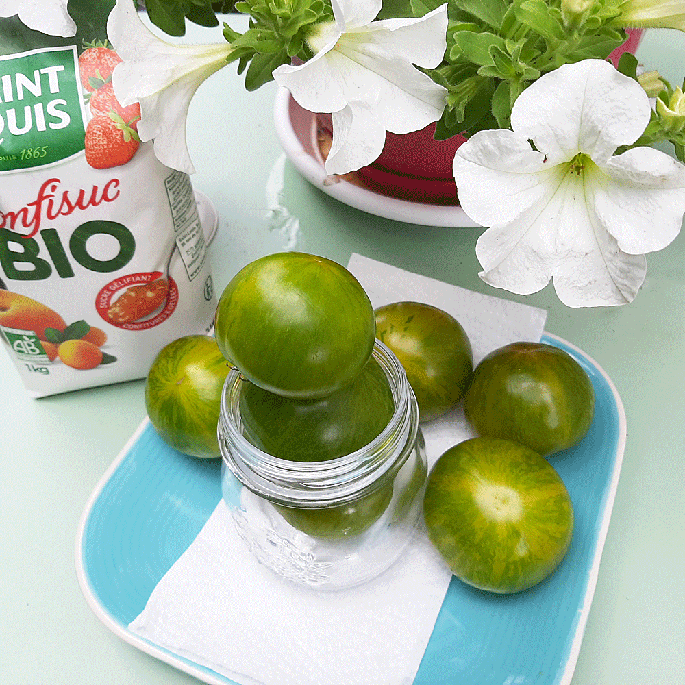 Mignons, tes deux ports de tomate verte. Tu as mis quelle proportion de sucre ?