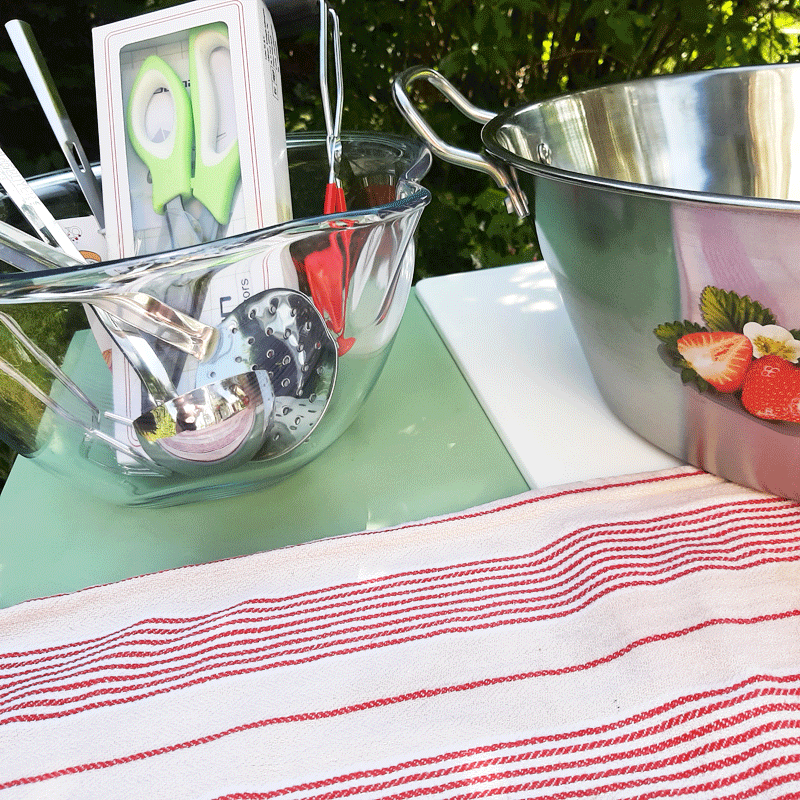 Le temps passé en cuisine, au rythme du temps des confitures, ça devient sérieux dès le premier juillet. À cette date, je commence à rassembler le nécessaie matériel incontournable, notamment la bassine à confiture. Si la bassinoire est arrivée l’an dernier (mais pas servie), ce sera cette année. À regret toutefois (faute de cuisiner au gaz) de n’avoir pu orienter mon choix vers une jolie bassinoire en cuivre, dans l’idéal de réalisation des confitures, et cependant, cela ne changera en rien le plaisir de faire, ainsi que le plaisir d’offrir qui restent entiers.