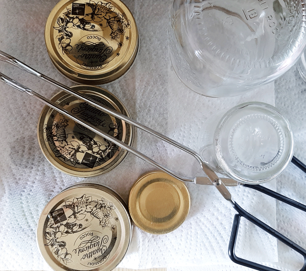 Oh ! Tu t’es en effet équippée, je vois des pinces à bocaux, histoire de ne pas appeler à la rescousse ton assureur favori, Muriel ! N’empêches qu’il vaut mieux être toujours trop prudents que pas assez, en sortant les pots de l’eau bouillante.