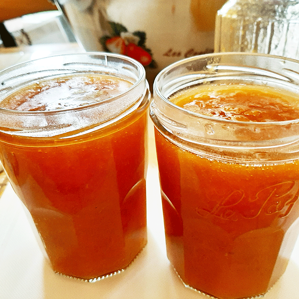 Au pas-à-pas, j’ai fait sa recette (quantités de sucre réduites). Je transmets le lien de la vidéo dans la publication de l’article. La bonne odeur de confiture libérée se répend dans la maison, aux effluves d’autrefois connues. Puis, au terme des finitions, dégustation gorgée de passion.