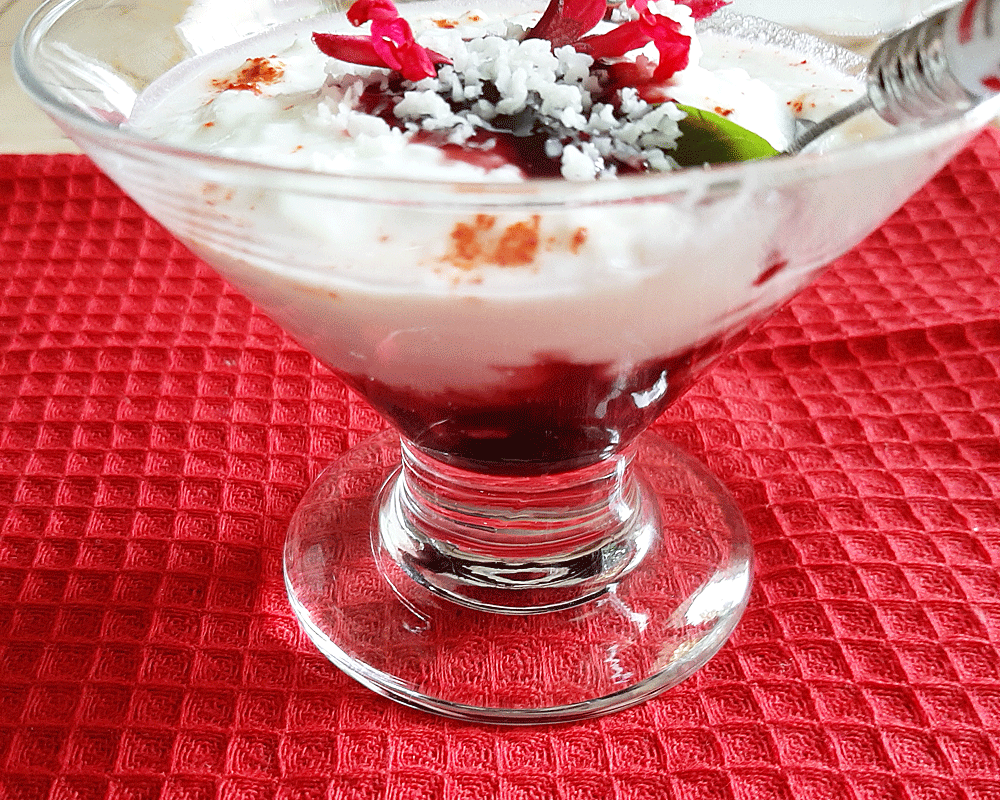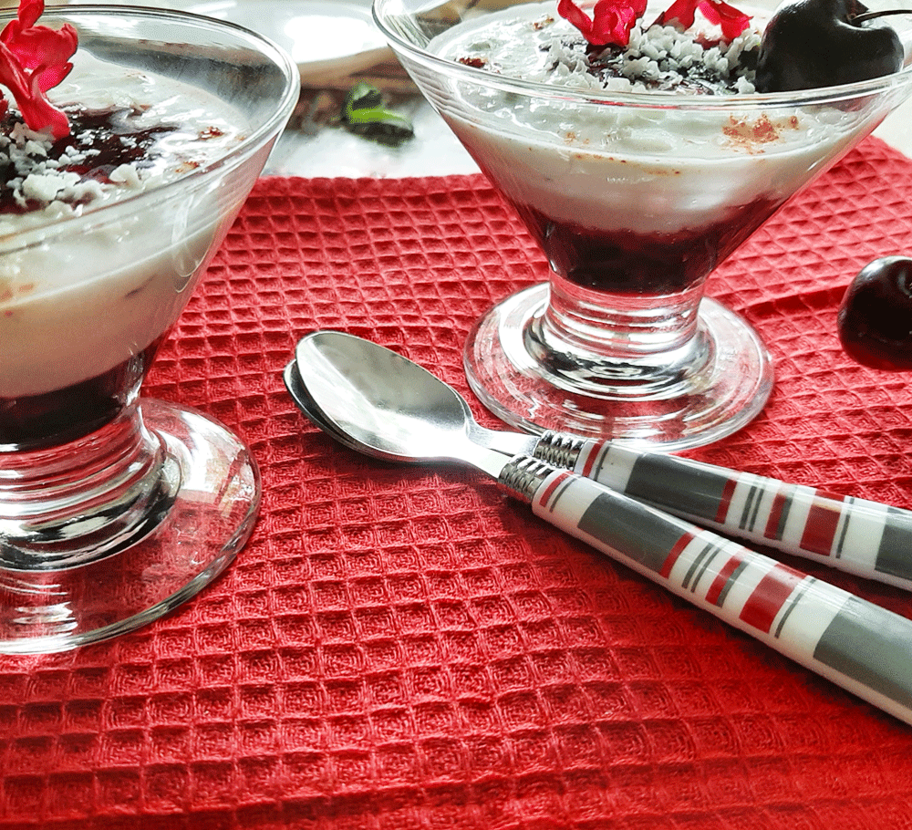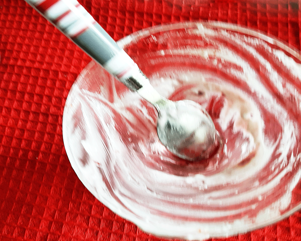 - Ajouter pour chaque coupelle 2 belles cuillères à soupe de fromage frais.