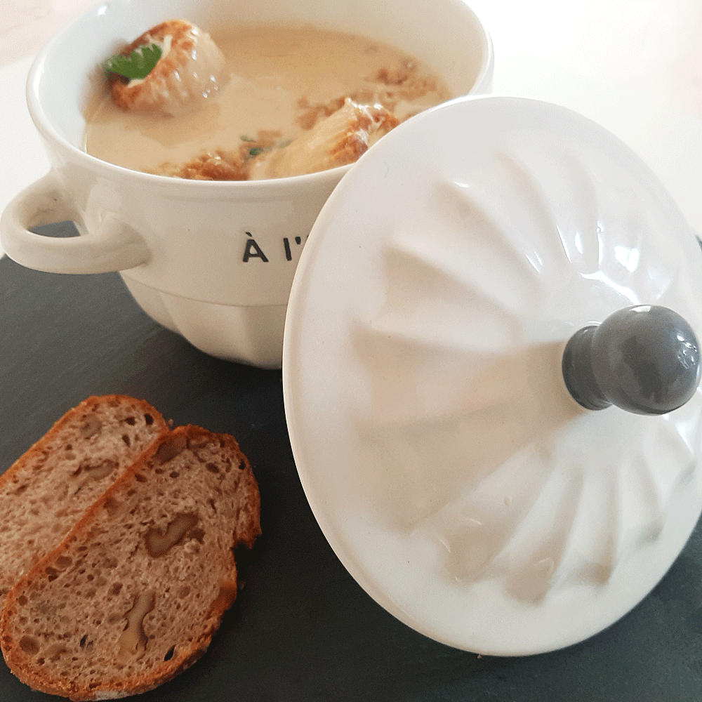 En Berry, le délicieux velouté que nos campagnes perpétuent depuis des lustres, arrive au moment où novembre y fait tout juste son entrée. Un potage d’automne, crémé et ô combien savoureux si bien préparé. L’un de ses veloutés côté terroir, dont on se délecte volontiers et la recette que je vous publie est on ne peut plus simple, à servir soit comme potage voire dessert.
