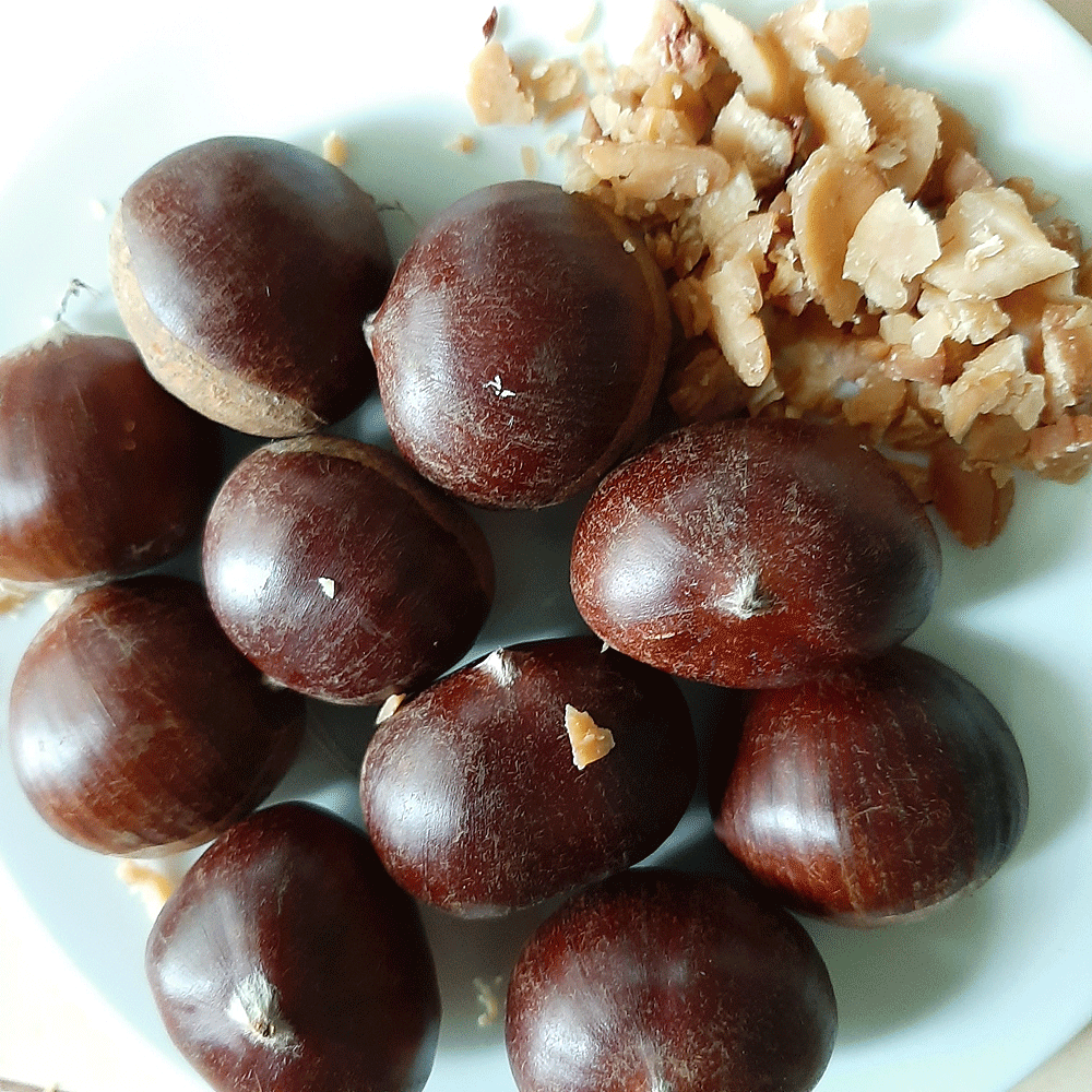 Pensez à conserver 3/4 châtaignes pour la déco au final de la préparation.