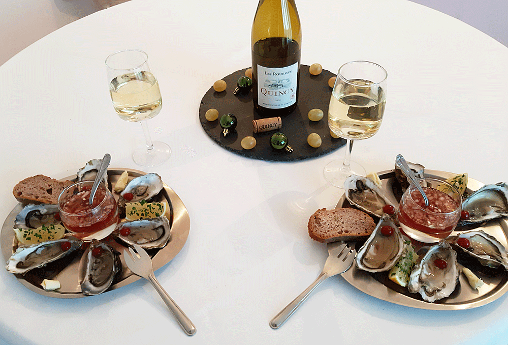 L’accompagnateur du duo dégustation d’huîtres ci-dessus provient du domaine « Quincy des Rouesses« , de la cuvée 2020. Depuis le vignoble exposé sur les rives du Cher, sur des sols sableux comprenant une partie argilo-calcaire. Il s’agit d’un blanc digne de son terroir, tant un grand vin de Loire qu’une note révélant un bouquet très agréable. C’est l’un de ceux qui reviennent volontiers sur les tables de dégustation de Miam Berry, et ce pour sa finesse et sa légèreté. S’il accompagne parfaitement les huîtres, ce blanc berrichon tiendra également ses promesses en termes de fruits de mer et de fromages de chèvre.