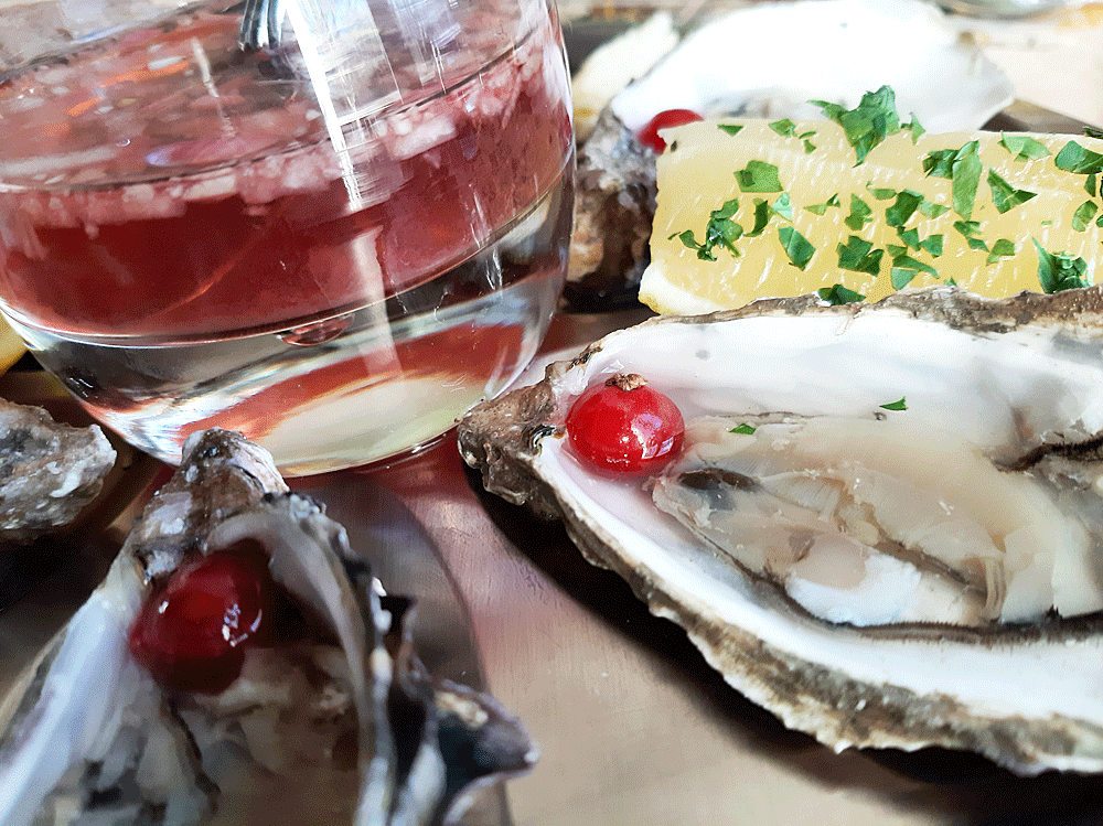 • 1 douzaine d’huîtres : ici « Pied de Cheval » de Cancale, fines et charnues