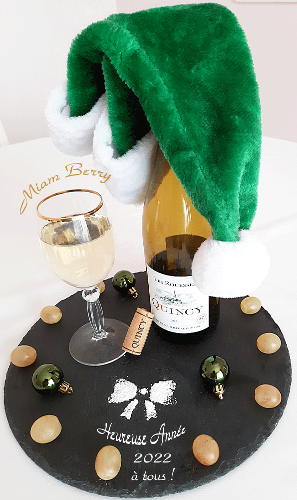 Voilà ! Aussi, par le premier petit déj de l’année, conclu, m’en suis remise au rituel annuel de la maisonnée. D’un reste d’une dégustation bien menée au dernier déjeuner partagé de 2021, entre embruns et vignoble, disposé ainsi pour vous souhaiter une belle et heureuse année, et autour, 12 grains de raisin dont le 1ᵉʳ a été savouré et les 11 suivants le seront de même via les onze jours à venir. L’une de mes « bonnes résolutions » listées et à tenir !