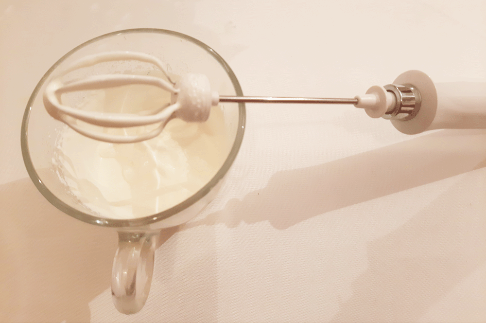 Lorsque je prépare une gourmandise autour d’un savoureux cappuccino, pour son onctuosité voulue, saisir cet ustensile rime avec plaisir. Qui ne fondrait pas pour un cappuccino dilué dans un bon moka, ou un latte macchiato ? Et vous avez compris où je veux en venir ! Vous partager cet article qui rassemblerait quelques visuels sur une gamme des possibles, préparés avec un tel appareil : aussi léger qu’une plume mais tout aussi efficace. Je prends l’exemple de ma recette précédente, où il accompagne une entrée de fromage frais, je vous invite à revoir l’article.