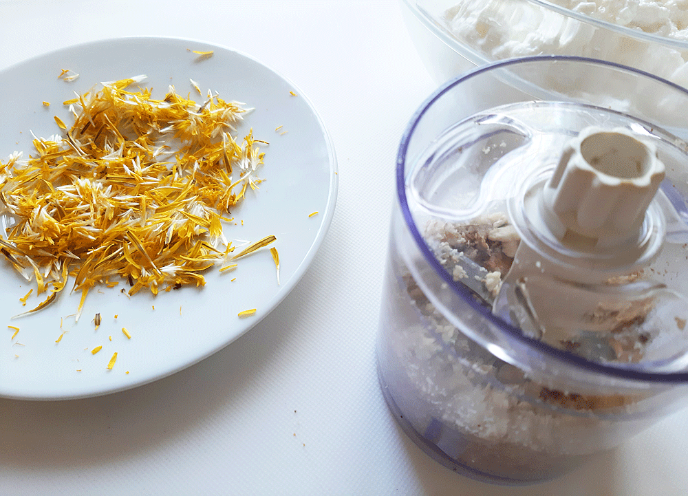 Voici comment je procède. Après la récolte des fleurs, je lave celles-ci et les place entre deux feuilles de papiers absorbant. Puis je détaches les fleurs tubulaires.