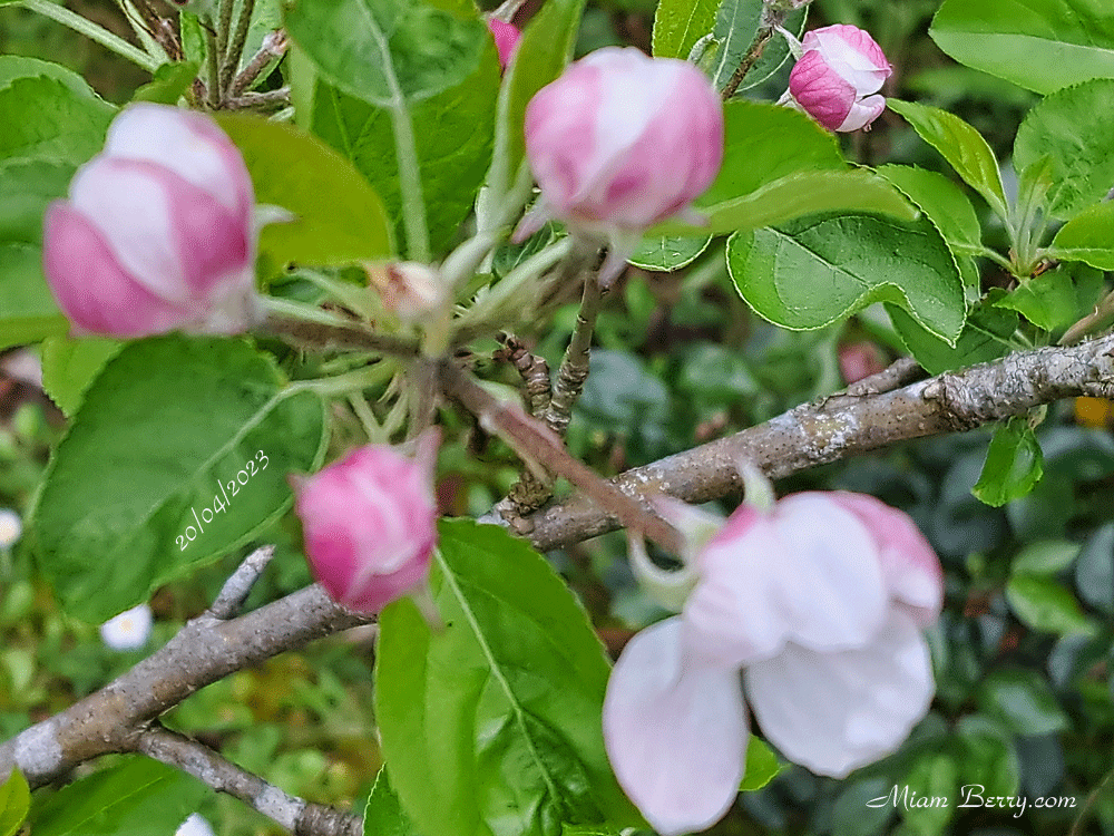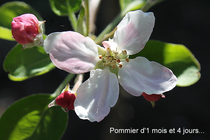 Le miniature ne change pas beaucoup. Il a fait 6 branches depuis, mais ce n’est pas anormal, attendu qu’il s’agit d’un pommier min. le développement est moindre. Actuellement, il a les allures d’un bouquet haut au milieu.