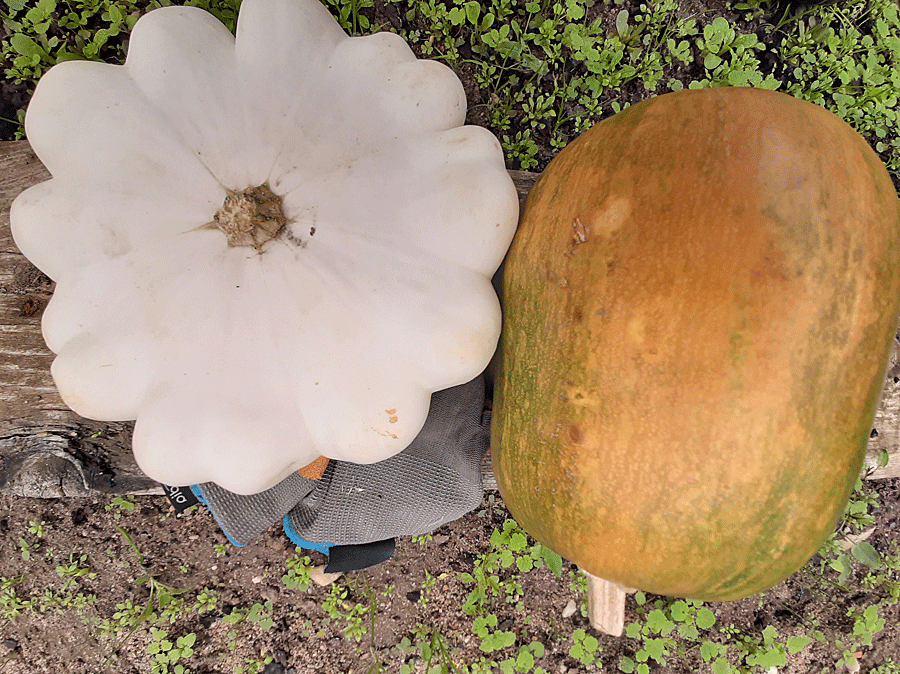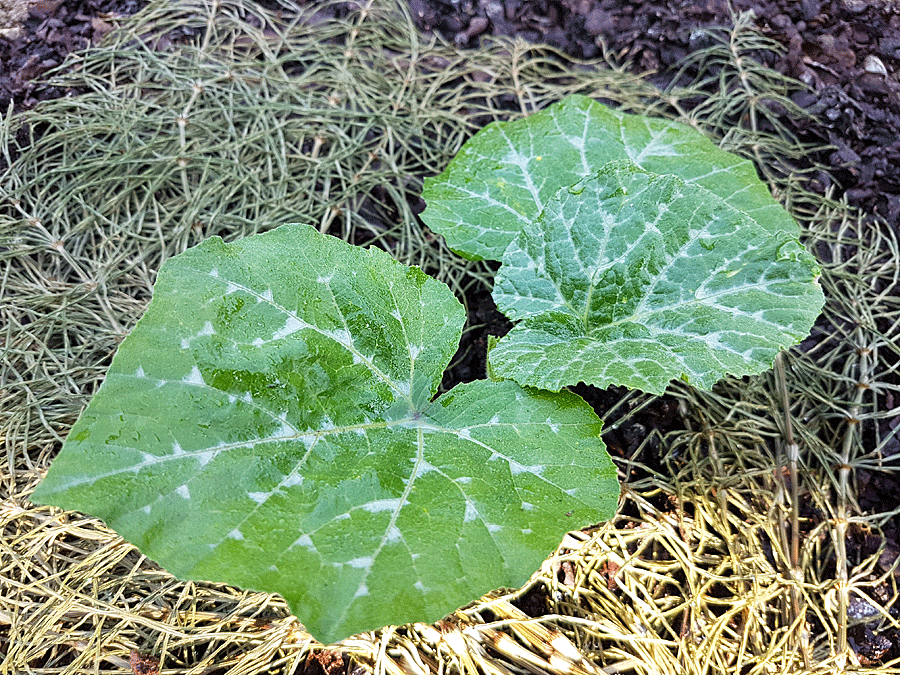 Pour nos courges qui ne sont pas sucrine, on met de la tonte fraiche comme paillage pour tenir au frais et qui réduit les arrosages.