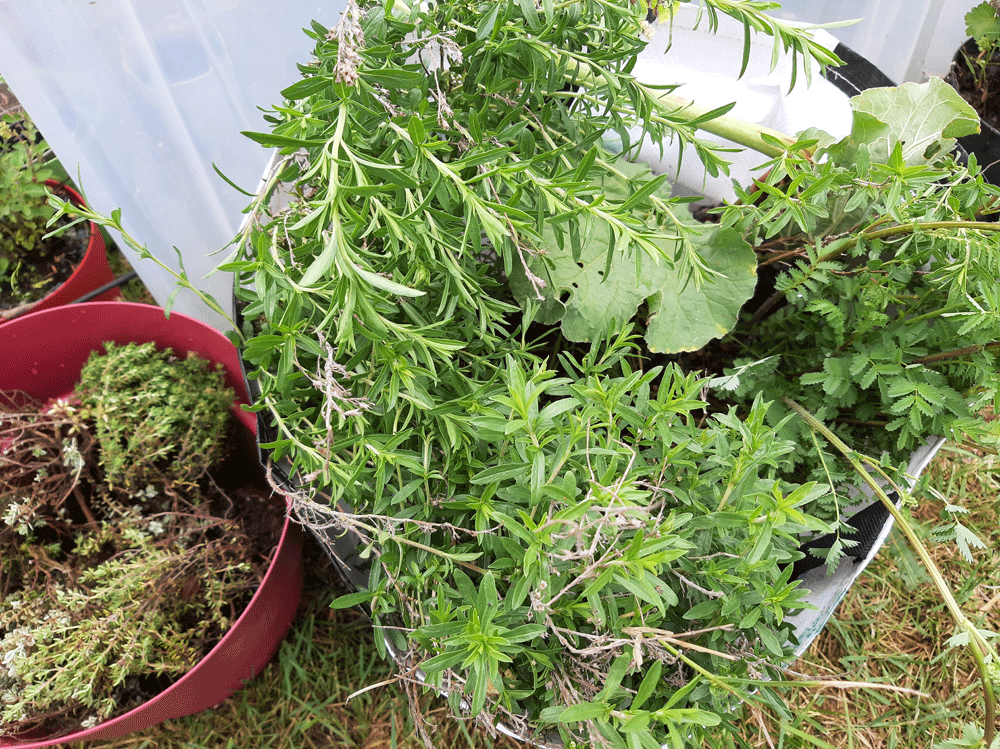 J’ai sorti mes outils, parlé doucement aux plants et entrepris l’extraction. Déterrer une plante, c’est comme interrompre une conversation intime avec la terre. On s’excuse presque. Ne voulant courir le risque de perdre le moindre aromatique qui s’était montré si généreux au potager, alors je pris les dispositions nécessaires, n’épargnant pas le moindre plant d’anticipation sur le travail à réaliser.