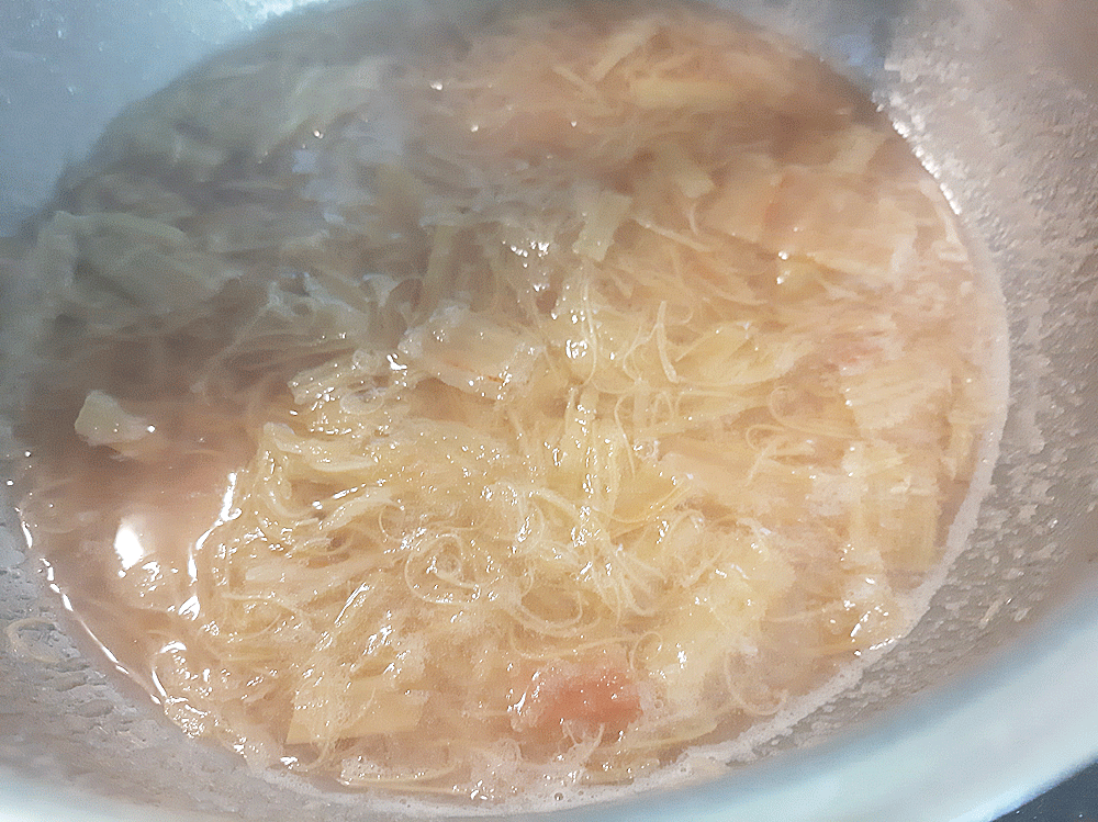 - Au couteau, enlever les feuilles de la rhubarbe pour ne conserver que les tiges. Les nettoyer sous un filet d’eau, puis les couper en tronçons réguliers. Mettre dans une casserole et recouvrir d’eau. Cuire à feu moyen une dizaine de minutes, saler légèrement. Lorsque réduite en compote, en remplir deux verrines comme ci-dessus. Laisser refroidir à température ambiante avant de les mettre en attente au frigo quelques minutes. A votre goût vous pouvez bien sûr mixer. Pour deux mini verrines, cela c’est fit tout seul.