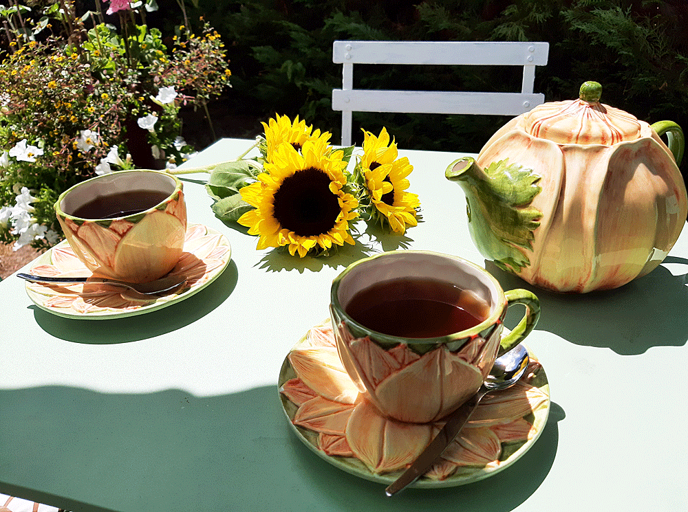 Enthousiasmé par le Soleil ! Hier encore, l’instant thé se saisissait d’un heureux songe d’été, augurant une encore belle journée sous la latitude du Berry. D’un Soleil qui tout juste est levé, à ceux touts frais et posés au jardin, voilà que ceci m’inspire une moisson d’images à venir, bientôt ! En ce moment, c’est … Lire la suite Un thé au jardin