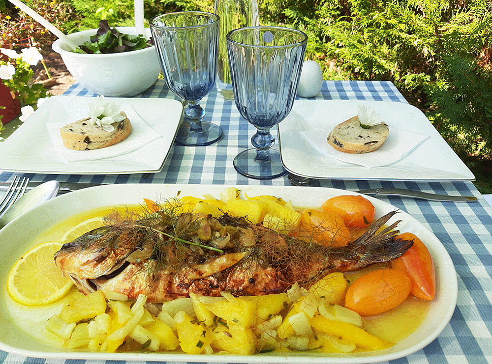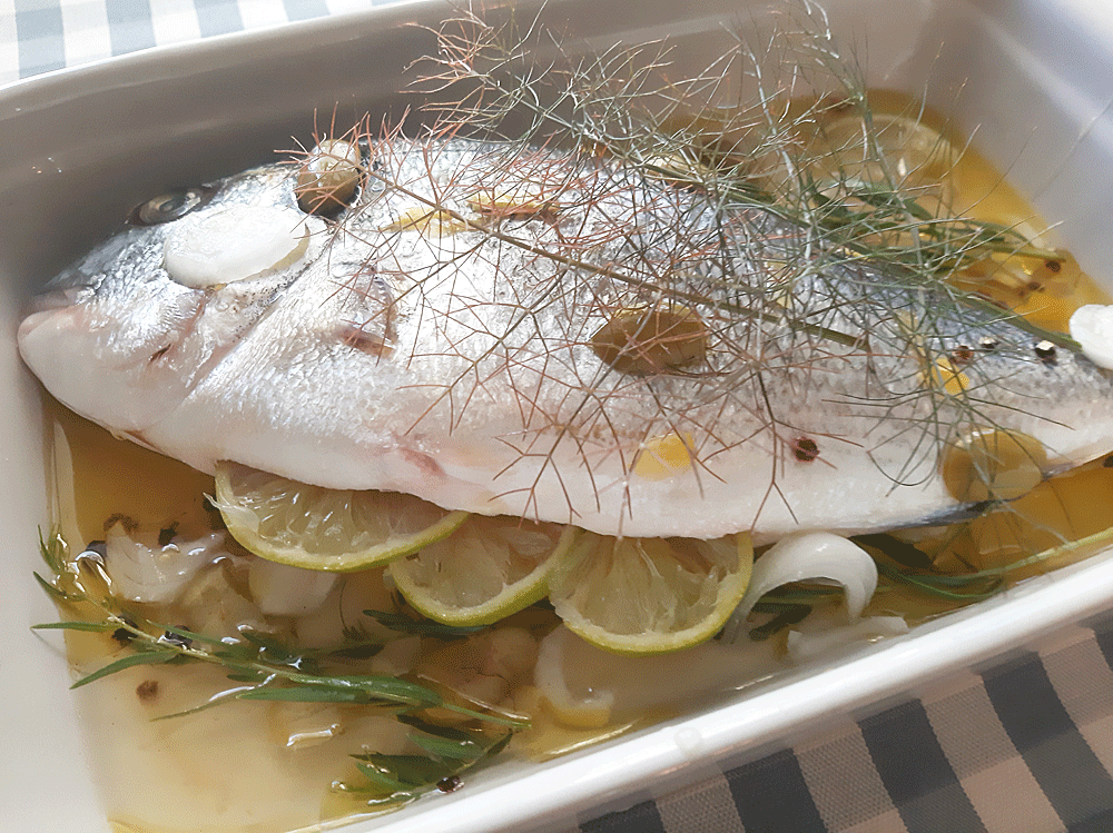 Pour de belles couleurs dans l’assiette estivale, aujourd’hui je vous partage ce billet. Préparez et dégustez la daurade royale ! Cette daurade qui est prisée en termes de gastronomie, pour sa chaire fine et fondante – accompagnée d’un petit bouquet de fenouil bronze qui donne suite à l’article que je publiais de ma plante potagère. De quoi faire chanter vos papilles gustatives ! À vous de faire, en préparant ce plat et le partager à vos amis ou en famille, sous le parasole ou pas ;)