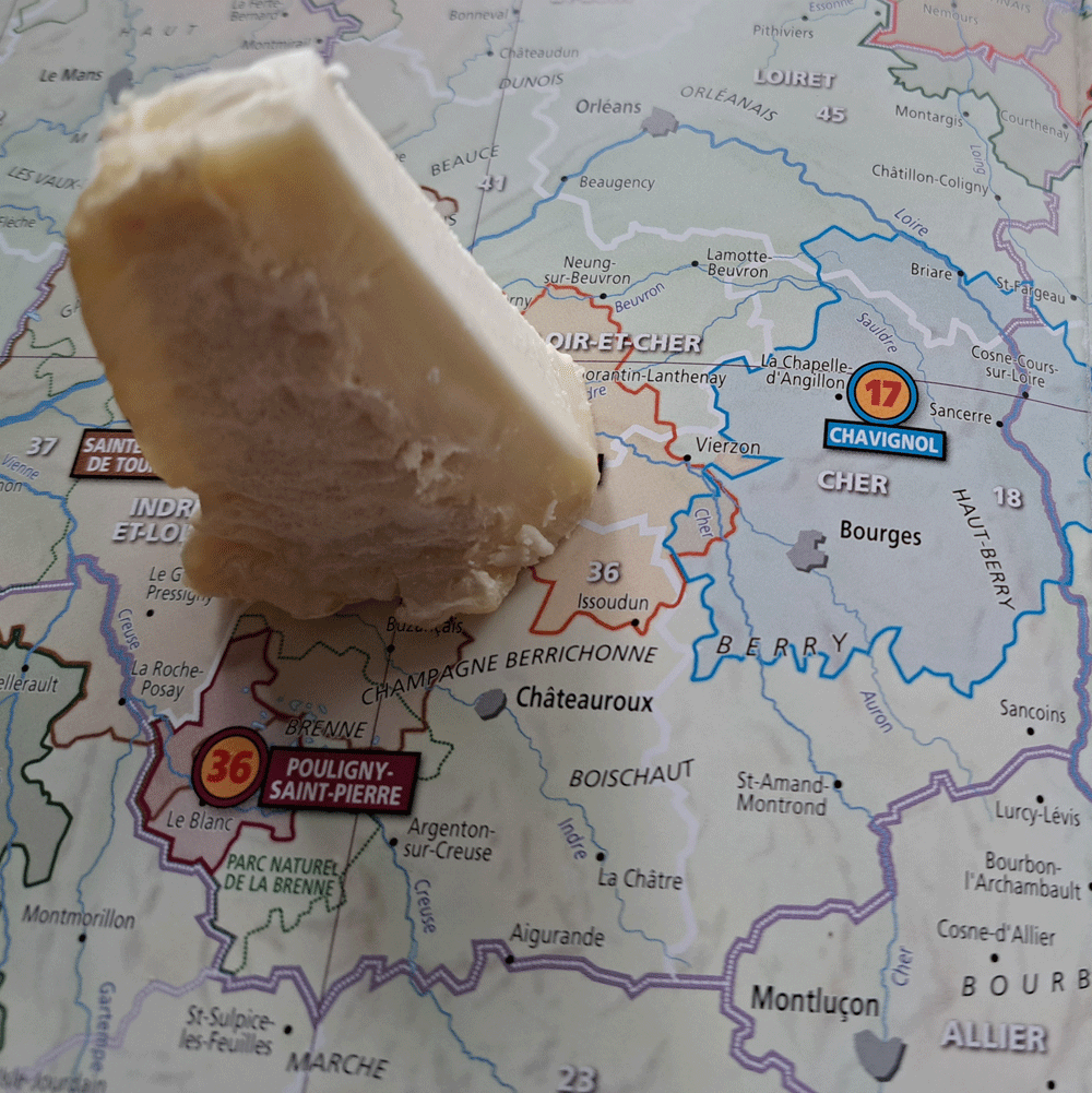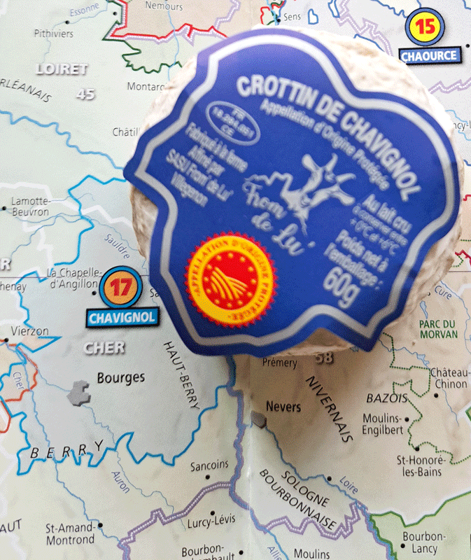 Par la D 955 et presque 49 km au-dessus de Bourges est situé le village de Chavignol qui produit dans ses alentours le savoureux petit crottin de chèvre au lait cru, à la croûte crémeuse et moelleuse. Celui-ci contre a un goût plus rustique, il a séché petit à petit et de fait, un fromage plus sec.