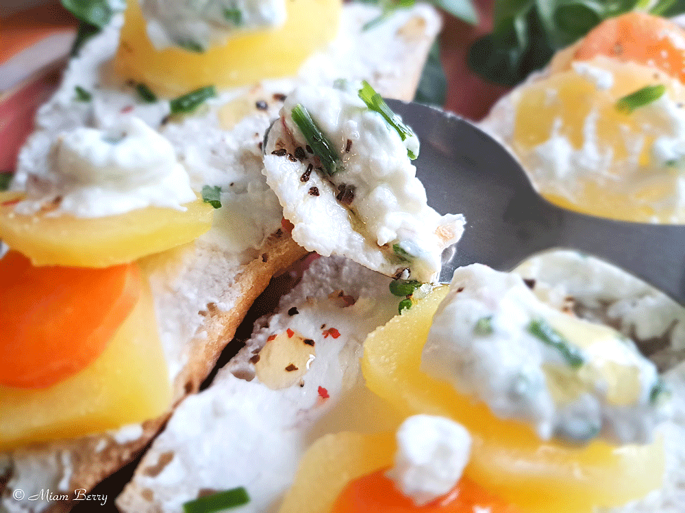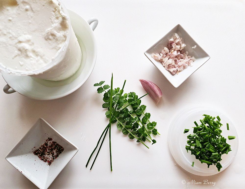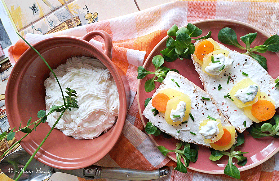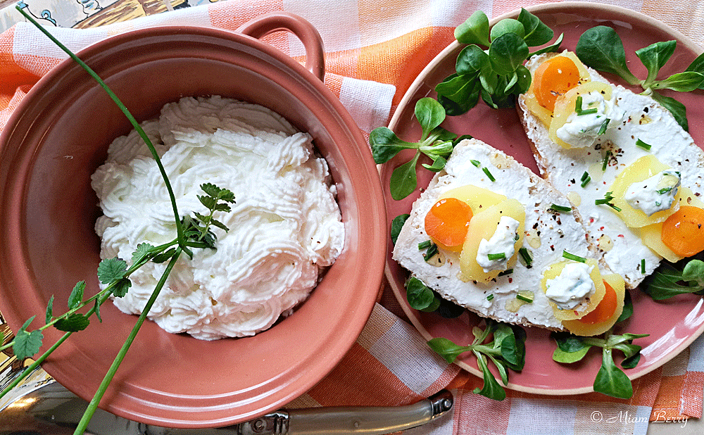 Quoi qu’il en soit, si la fromagée se décline alternativement entre lait de vache et lait de chèvre, c’est ce dernier qui a ma préférence, pour une saveur plus prononcée et gouteuse d’un fromage frais au lait cru que l’on égoutte à notre convenance, d’où son nom « faisselle ». Ce qui me plait aussi, c’est que l’on peut l’adapter à différents ingrédients.