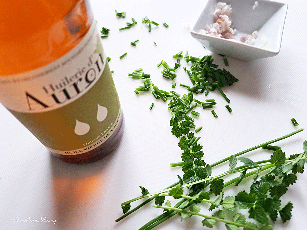 Celle-ci locale, bien sûr, accompagnée de carottes, de doucette, de pommes de terre cuites, fondantes et servies tièdes, auxquelles j’ai ajouté quelques gouttes d’huile de noisette, berrichonne également. Des alliances harmonieuses autant que savoureuses, j’avoue que cette assiette concoctée vite fait (mais aussi parce que je suis addicte du fromage) me fait chavirer.
