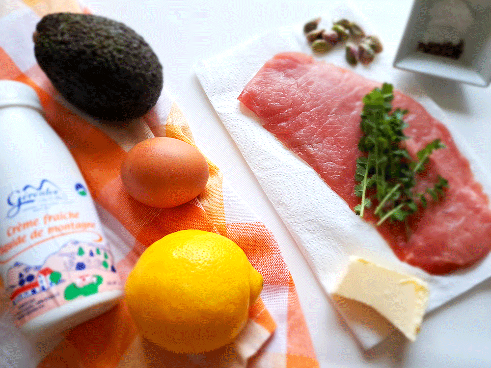 Aujourd’hui, je vous propose une viande de veau autour de quelques ingrédients, notamment autour d’un fruit de saison, l’avocat, cuisiné en sauce, et saupoudré de quelques éclats de pistache broyés simplement au petit mixeur – toujours prêt à rendre service (2/en 1 Valentin SEB).